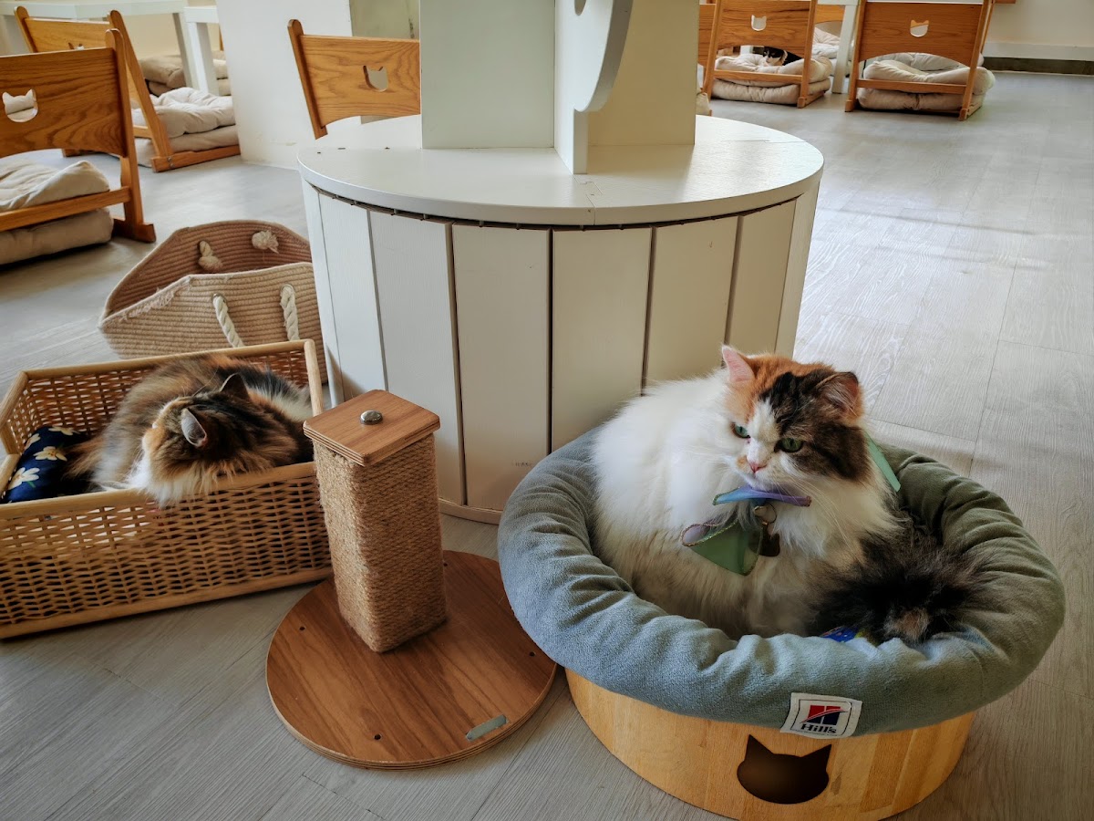 Guests are welcomed with an array of complimentary amenities designed to prioritize both visitor and cat comfort. You'll find cozy slippers for your feet, convenient bags to stow your belongings, and hand-sanitizing stations at the entrance—testament to the café's dedication to maintaining a clean environment. As customer P.S. wisely notes, having a printed set of rules on the tables could enhance the visitor experience by helping everyone remember the important guidelines to follow when interacting with the resident felines.